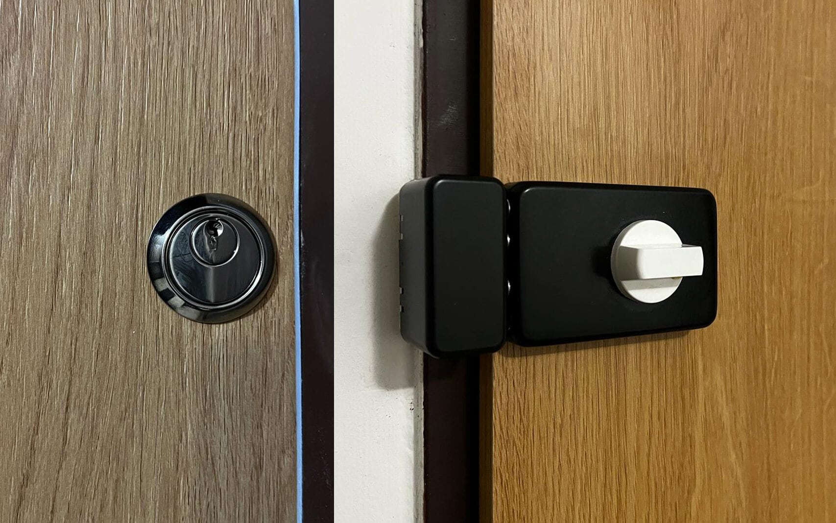 Pro zvýšení bezpečnosti jsem nainstaloval přídavný zámek FAB 1572, který je vhodný pro pravé i levé dveře. Zámek je certifikovaný ve 2. bezpečnostní třídě a zevnitř se pohodlně zamyká pomocí knoflíku – bez nutnosti použít klíč. Jednoduché, ale účinné řešení pro klidnější spaní.